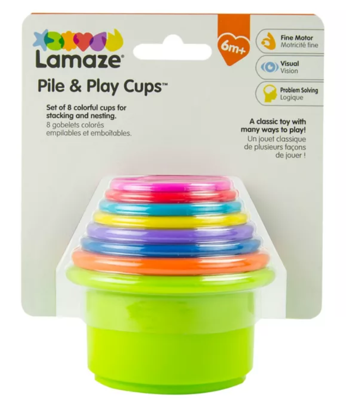 Rating: 🍎🍎🍎🍎🍎 (5/5) I purchased the Lamaze Pile & Play stacking cups on a whim at Target when my oldest was six months old.  Little did I know, this would be one of my BEST baby purchases of ALL time!  In fact, we have close to five sets of these stacking cups now.  We have…